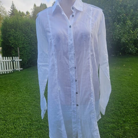 Burberry skjorte i størrelse XL. Skjorten er hvit med detaljer i klassisk Burberry-rutemønster på innsiden av kragen og mansjettene. Laget av bomullsmateriale, egnet for formelle og uformelle anledninger.