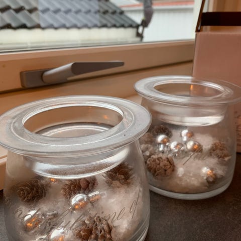 Noen av dem kan ha et litt oransje fargespill hvis du holder dem på en vinkel eller i bunnen, syntes ikke ved bruk eller når de er stående på bord, hyller etc (se bilder).