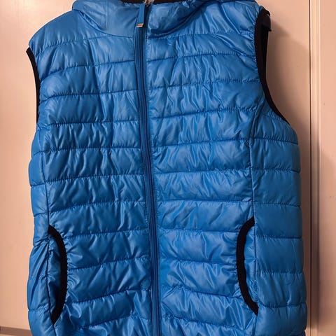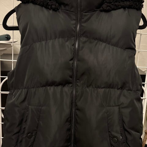 FB Sister Vest i størrelse M for kvinner. Vesten er hvit og har et mykt, fleeceaktig materiale på innsiden og kragen, som gir ekstra varme og komfort. Egnet som ytterplagg i kjøligere vær.