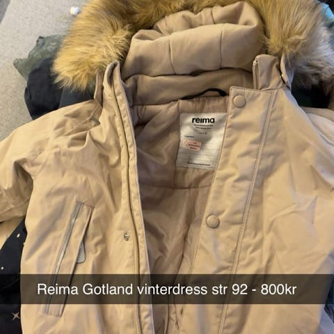 Reima Gotland vinterdress i str. 92 i en nydelig grønnfarge. Pent brukt. Noe dråpe-flekker i mørkere grønn foran på dressen. Liten, begynnende rift på høyre kne. Se bilder.