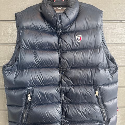 Vesten er reversibel, og kan vrenges for å få en beige versjon. Tykk og solid glidelås, samt patch med logo.