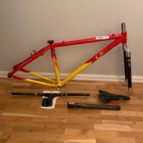 Nye rammer . har vært i en utstilling i en butikk, så du vil finne merker å riper etter laaang tid på et lager. Kan kompletteres med flere deler hvis du ønsker. Lengden på TT er 20,5" og de bruker standard 20" Hjul med 14mm aksel