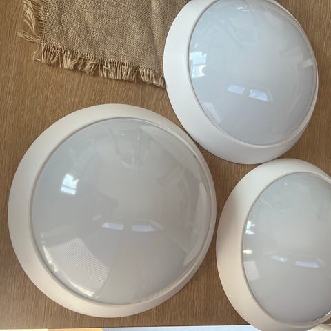 DEFA Neptune 001, modell A2101041, er en original utelampe produsert av DEFA Group i Norge. Lampen har et solid hus i støpt aluminium med hvit overflate og en opal lysdiffusor beskyttet av et kryssformet gitter. Den er IP55-klassifisert og tåler både støv og vannsprut, noe som gjør den egnet for bruk på yttervegger, ved inngangspartier, i garasjer eller i trappeoppganger. Armaturen bruker et kompaktlysrør med G23-sokkel på maks 9 watt og drives med 230 volt. Produktet har aldri vært i bruk og fremstår som nytt, men esken er slitt og delvis ødelagt etter lagring. Pris kan avtales, og lampen kan hentes eller sendes etter ønske.