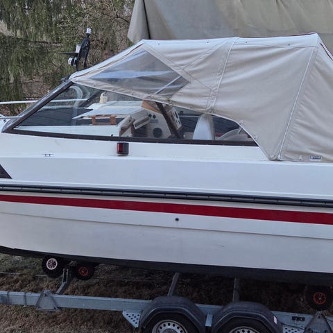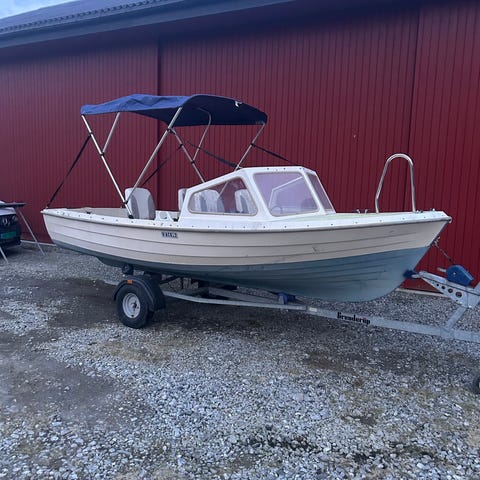 Delebåt selges er i bunn og grunn hel men Amy gjorde sitt inntog på den så kalesje og litt sånt gikk i stykker !