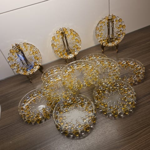 9stk vakre vintage dessertskåler med guledetaljer av Walther Glas Komet serien.
