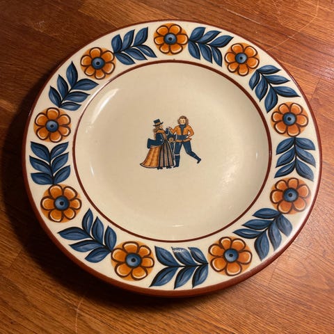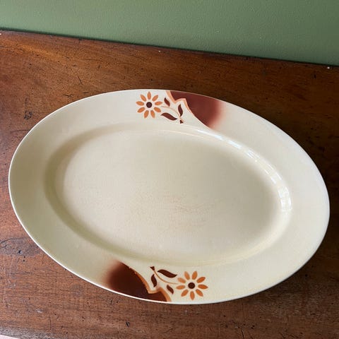 På undersiden er det et stempel fra Sarreguemines, en kjent fransk keramikkprodusent.