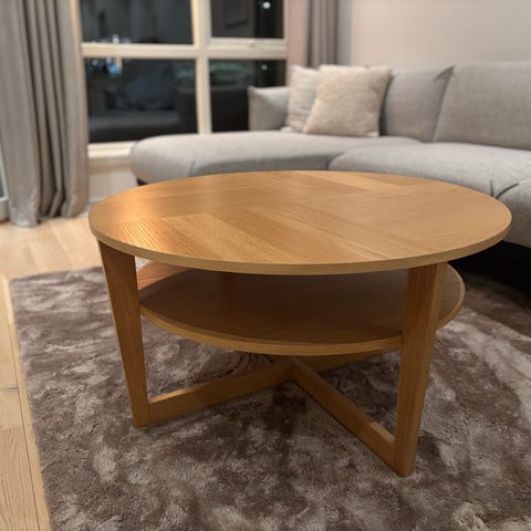 Pent brukt stuebord selges. Lett å sette sammen. Ingen merker. Nypris 1695 kr