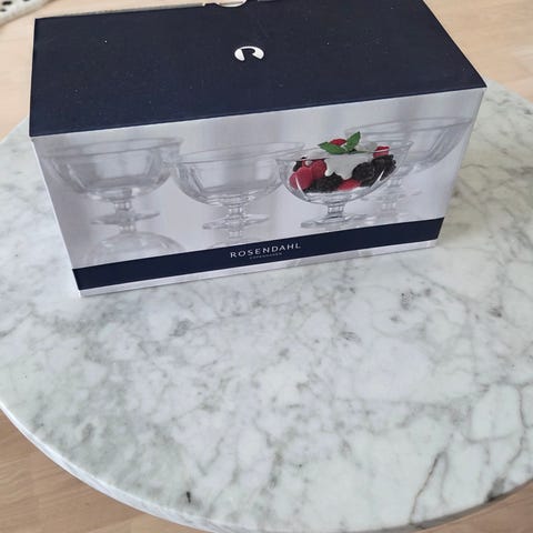 Fire små skåler med stett og en stor bolle selges samlet. Rosendahl grand cru soft. Hele og pene. Nesten ikke brukt.