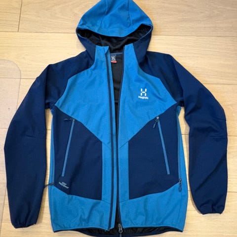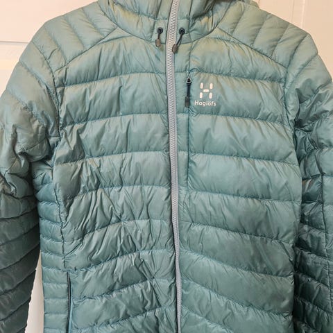 Haglöfs Torsang Down jakke i blå farge, størrelse M(W). Jakken er laget med dunfyll, og har hette. Varm og god jakke. Har brukt den mest under skalljakke, men fungerer like fint alene.