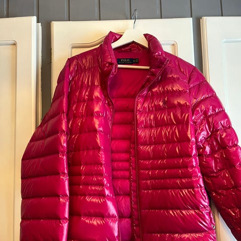 Lekker vinterjakke med belte i midjen. Passer til S/M i str. Fargen er mørk rosa, mange har kommentert. Ny pris var 3800kr.