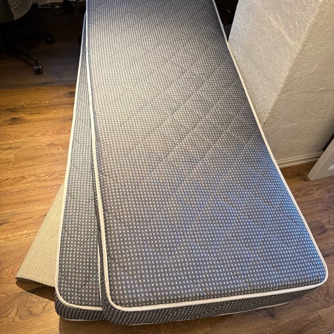 To pent brukte madrasser type Wellpur selges kr 500,- pr stk. Madrassene har størrelse