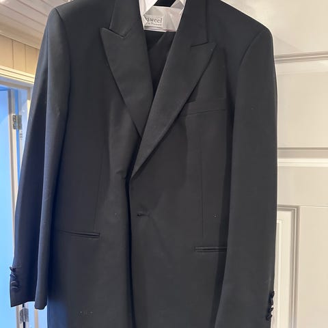Sort smoking, jakke str 56, bukse str 52.