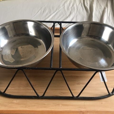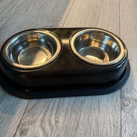 Dobbel Hundeskål Rustfritt Stål, metall stativ.