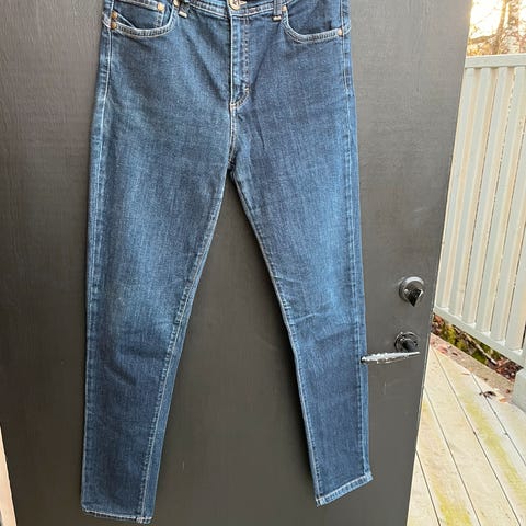 Lite brukt bukse til dame, Acne Climb Blue Black. Størrelse 27/32.