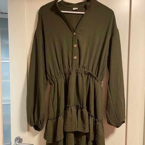 Grønn kjole fra Floyd i størrelse L selges. Kjøpte og brukte som julekjole ifjord. Brukt 3ganger.