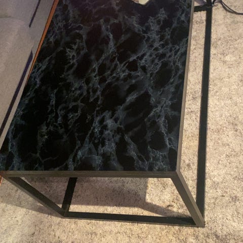 Sort sofabord i marmor mønster, pent brukt tilstand. Ingen bruksmerker eller slitasje.
