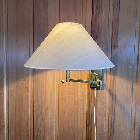 Elegant lampe med arm som kan foldes sammen, original plissert skjerm