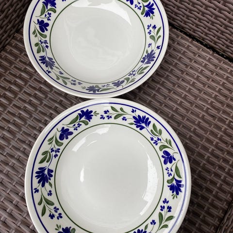 3 dype tallerkener fra Porsgrunn Porselen. D-23cm. 50kr per stk.