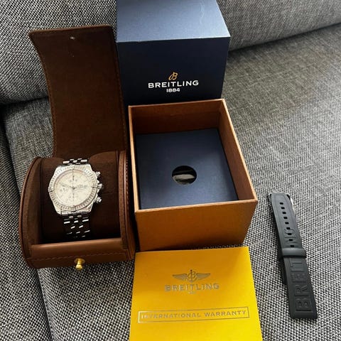 Har også et par nato-straps som kan følge med, disse er brukt istedenfor lærreimen.