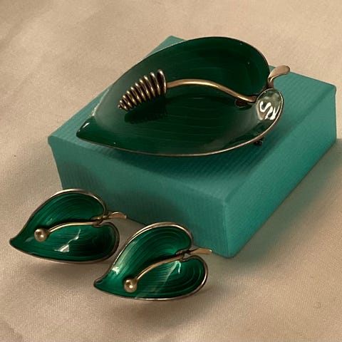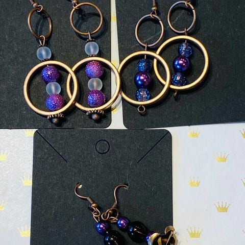 dråpeformet øredobber med perler, laget med en teknikk som kalles brick stitch, hele og fine.