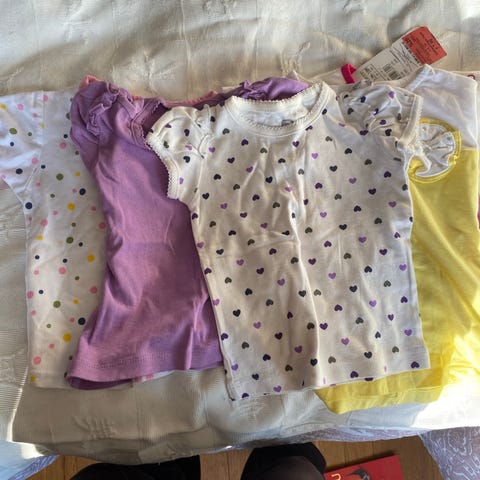 barneklær sett for jenter i størrelse 98, farge rosa. Settet består av flere plagg med ulike mønstre og trykk, inkludert enhjørning og dyremotiv. Materiale og vaskeanvisning følger standard for barnes klær i denne størrelsen.