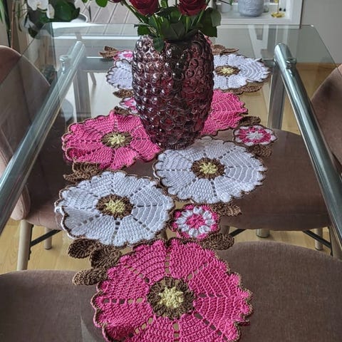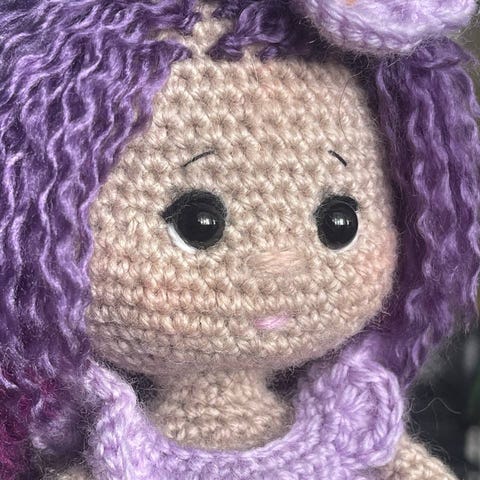 Denne bestemora har ikke noe forkle enda, men kan hekles etter dine fargeønsker. Se eksempel på siste bilde (originalen)