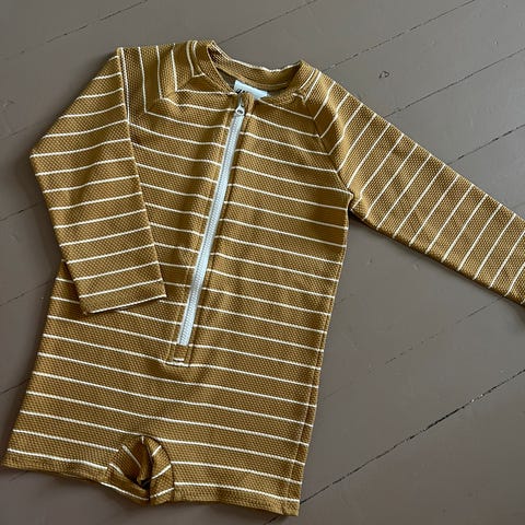 Kjempesøt sommerdrakt i str 92, korte ermer og ben. Lukkes med trykknapper foran, og har søte lommer med seilbåtmotiv på. Den er helt ubrukt, men vasket en gang i parfymefritt vaskemiddel.