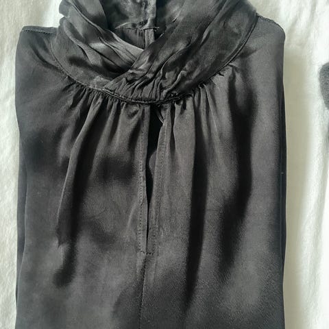 Strikket i str M i tynn silk mohair sammen med mini alpakka, begge fra Sandnes garn (mørk blå, natur/off white, lys grå og brun). Har strikket den litt lenger på armene og full lengde er 60 cm. God og varm genser. Har bare brukt den den et par ganger.