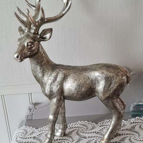 Ny/Ubrukt Stor hjort - Lysestake til telys, sølvfarget..
