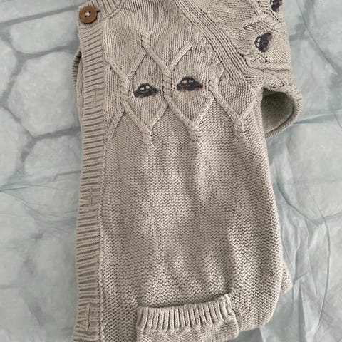 Nesten ubrukt sennepsgul strikkejakke i 100% ull, m knapper fra Name it. Noe stor til å være str 98.