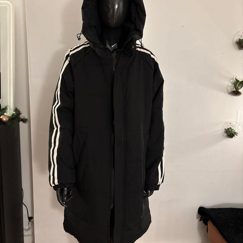 Pent og svært lite brukt lang vattert jakke. Det er en lite kulepennsflekk på den. Går sikkert vekk, men jeg har ikke vasket den jakken enda. Selger den derfor til 200kr om du ønsker å fjerne selv.