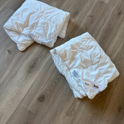 Ubrukt Høie Herkules babydyne m/bioactive i størrelse 65x80, antibakteriell fibre selges sammen med ubrukt Line baby sengesett i 65x80, lyse blå, se bilder. Herkules er en eksklusiv barneserie fylt med den antibakterielle fiberen Trevira Bioactive - som hindrer både bakterier og dårlig lukt i å utvikle seg. Fyll i dyna er 50% trevira bioactive polyester fiber og 50% polyester hulfiber og tilfredsstiller de høyeste krav til komfort og hygiene. Trekket er i 65 % polyester og 35 % bomullscambric som gjør den myk og slitesterk. Sengesettet er i 50% lin og 50% bomull. Selges samlet for kr 399 (sengesettet kostet kr 249 og dyna kr 449).
