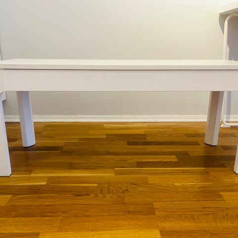 Bordet er som nytt. Ingen skader. Under bordflaten er det et løst brett som kan benyttes som serveringbrett. Praktisk når du skal drikke kaffe ute på terrassen. Bordet er kjøpt på Fagmøbler