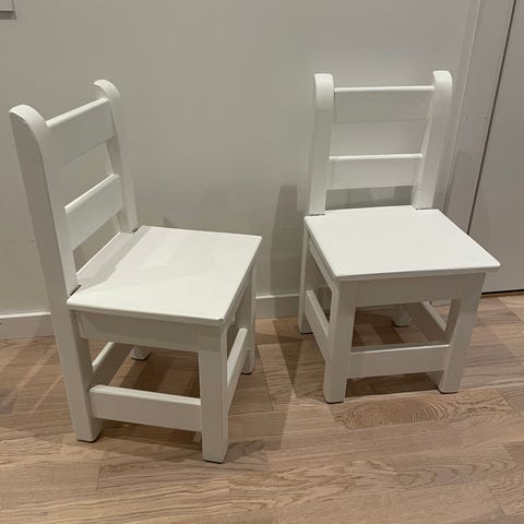 Tre flotte håndlagde barnestoler i massiv furu. Aldri brukt ,da jeg bare hadde plass til 1