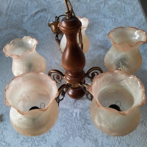 Fin retro bordlampe med lys skjerm med gulldekor selges kr 190,-