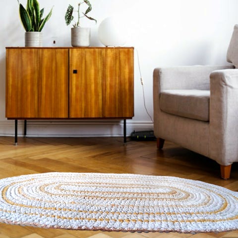 Et nøytralt og slitesterkt teppe, som gir et livlig preg til ethvert rom. Ideelt for stue, bad eller soverom. Ekte gjenbruk og ett håndlaget teppe av 100 % resirkulert sengetøy i bomull.