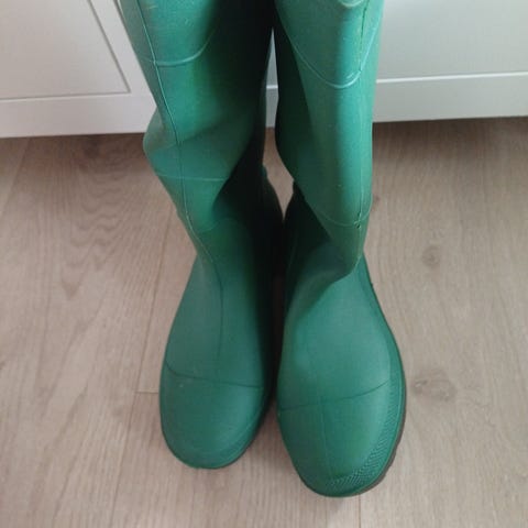 Havaianas støvler i størrelse 38/39. Fargen er blå/grønn, og materialet er vanntett gummi. Støvlene er designet for å gi beskyttelse mot vått vær.