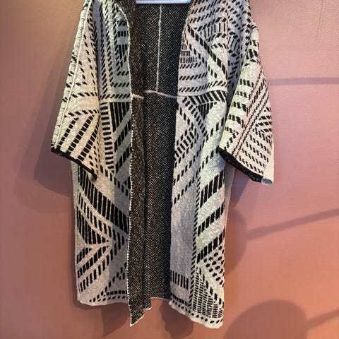 Lang kåpe uten knapper med store lommer og 3/4 erme