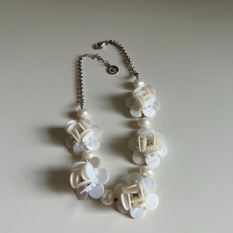 hvit kremhvit gullfarget tidløs halskjede