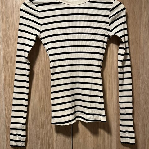 Varm og god ribbestrikket genser med innslag av ull (5%). Half zip og splitt på sidene. Loose fit og lange armer. Størrelse xs, stor i str. Nupper her og der som er uunngåelig.