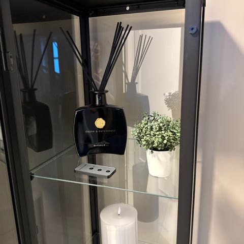 2 Vitrineskap, ene med glassdører, skuffer og lys