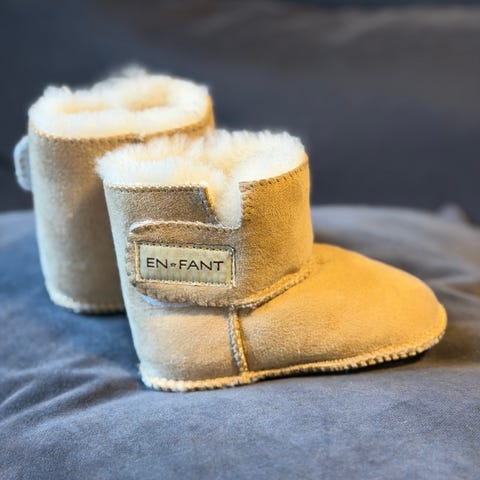 Selger disse søte saueskinnstøflene fra EN FANT i str M. De har enda veldig fin gammelrosa farge. Den kommer ikke helt frem på bildene.