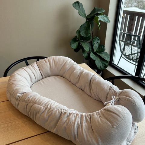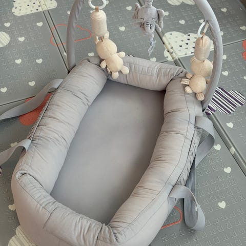 Veldig pent brukt babynest fra Lykkeliten 👶 trekket på madrassen kan tas av og vaskes. Fine detaljer på som blonder og silkebånd som kan strammes.