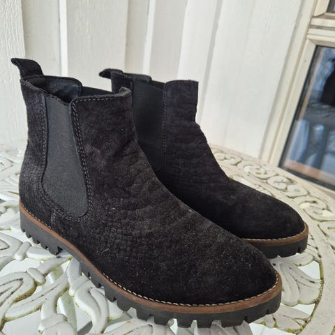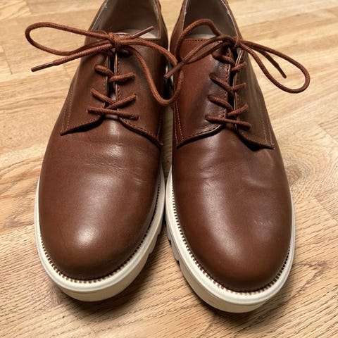 Pent og lite brukte sko fra Soft Comfort i skinn. Skoene er gode på foten og lette å gå med. Fargen er cognac og hælhøyden er ca 5 cm. Skoene har strikk på hver side, slik at de er lette å få på og av. Jeg kan sende skoene med PostNord (69,-). Jeg har Vipps.