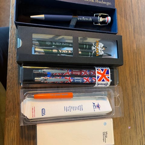 Pennene og etuiet har inngraveringer med navnet Ronald Reagan og Barac Obama pluss inngravert presidentsegl. Etuiet og penn er i mørkt tre.