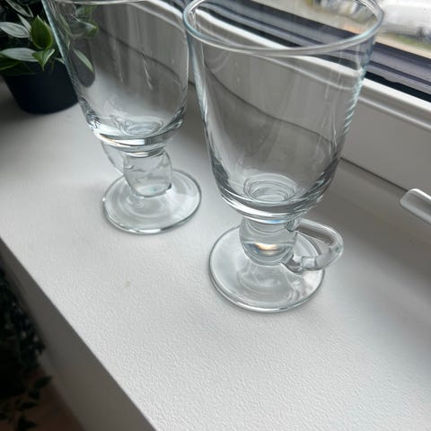 Disse to er aldri brukt... Irish coffee glass med sugerør i glass.