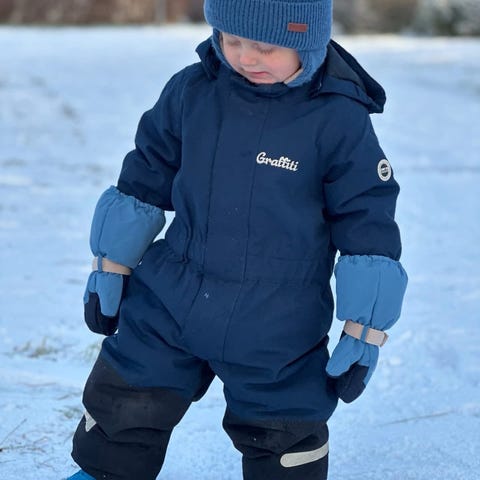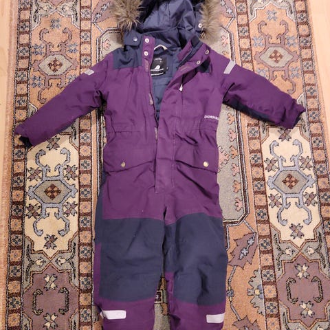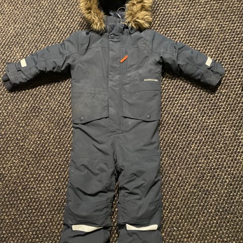 Didriksons Vinterdress i blå farge, størrelse 104,. Synlig slitasje på knapper, "glidelås snor" og nederst bak på beina. Se bilder. Selges derfor billig. Ellers hel og pen.