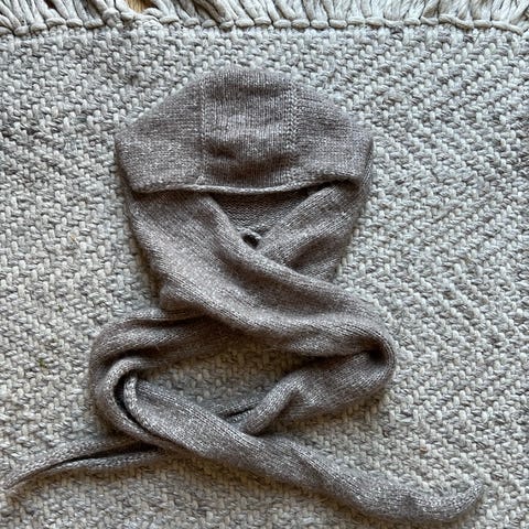 Ny håndstrikket Tromsø hoodie strikket i brush alpakka silk garn, one size, brun. + porto