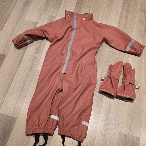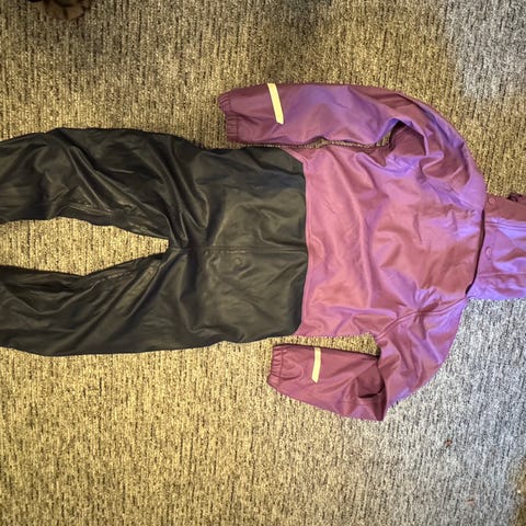 Uforet, tynn regndress fra navigere. Ikke helt tett, misfarging. Dinosaur motiv.