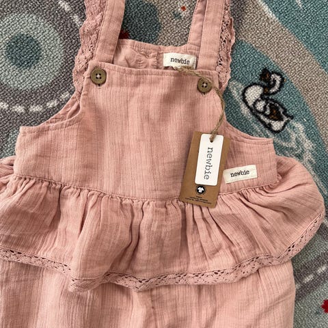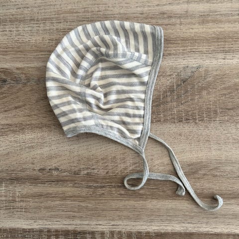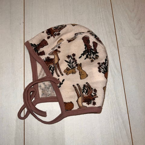 Str 48cm, 9-12 mnd 😊 kun brukt av en baby, tynn lue som er av 100% merinoull 😊 Røykfritt hjem, men har hund 🌸